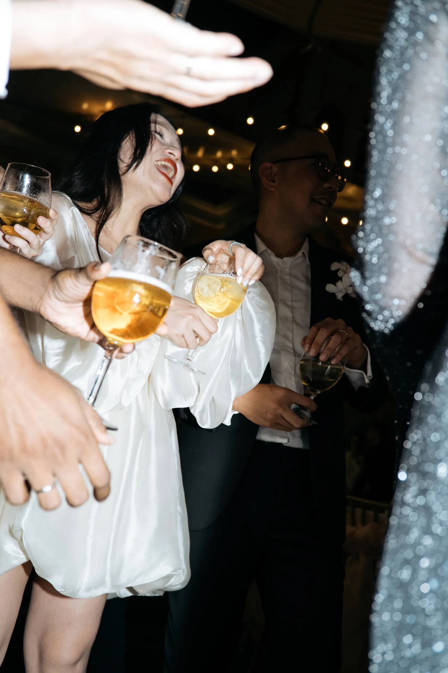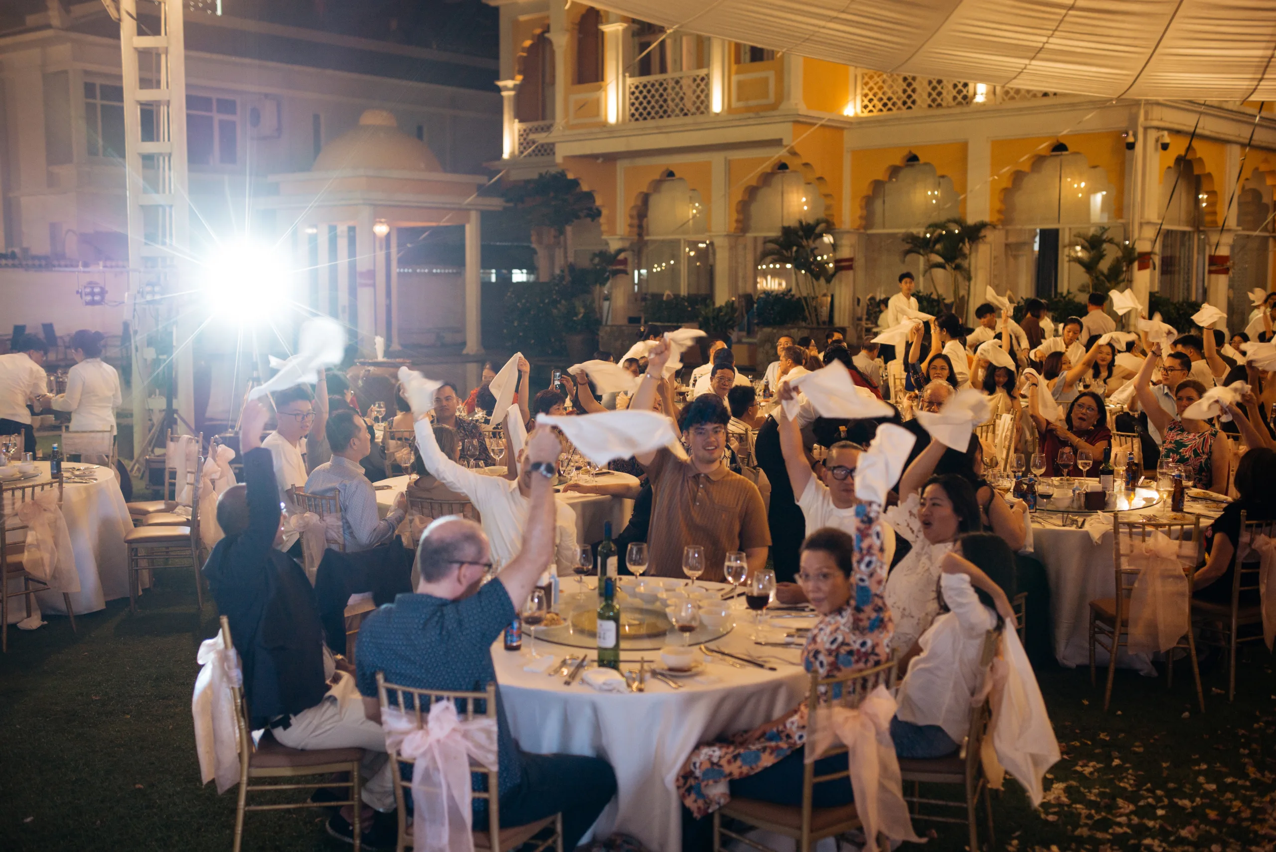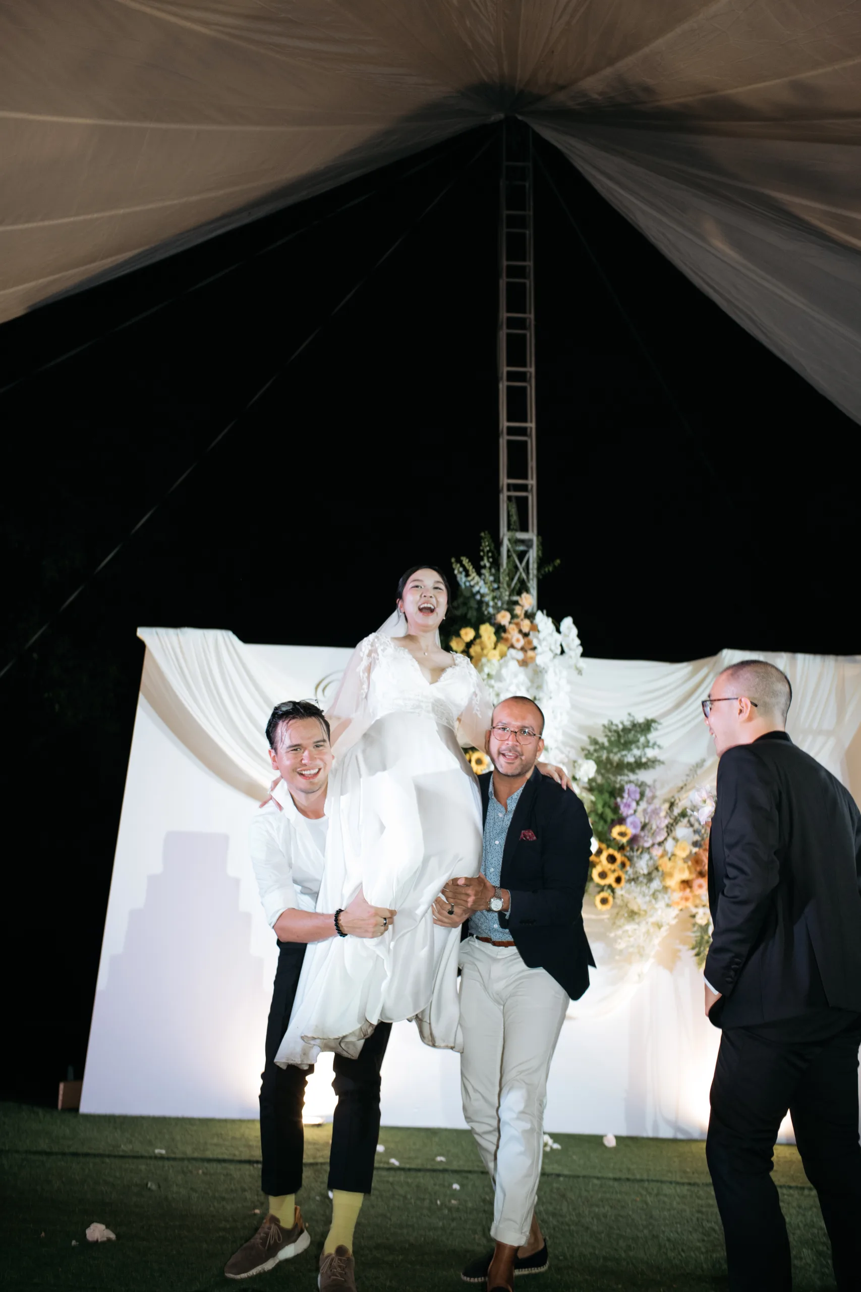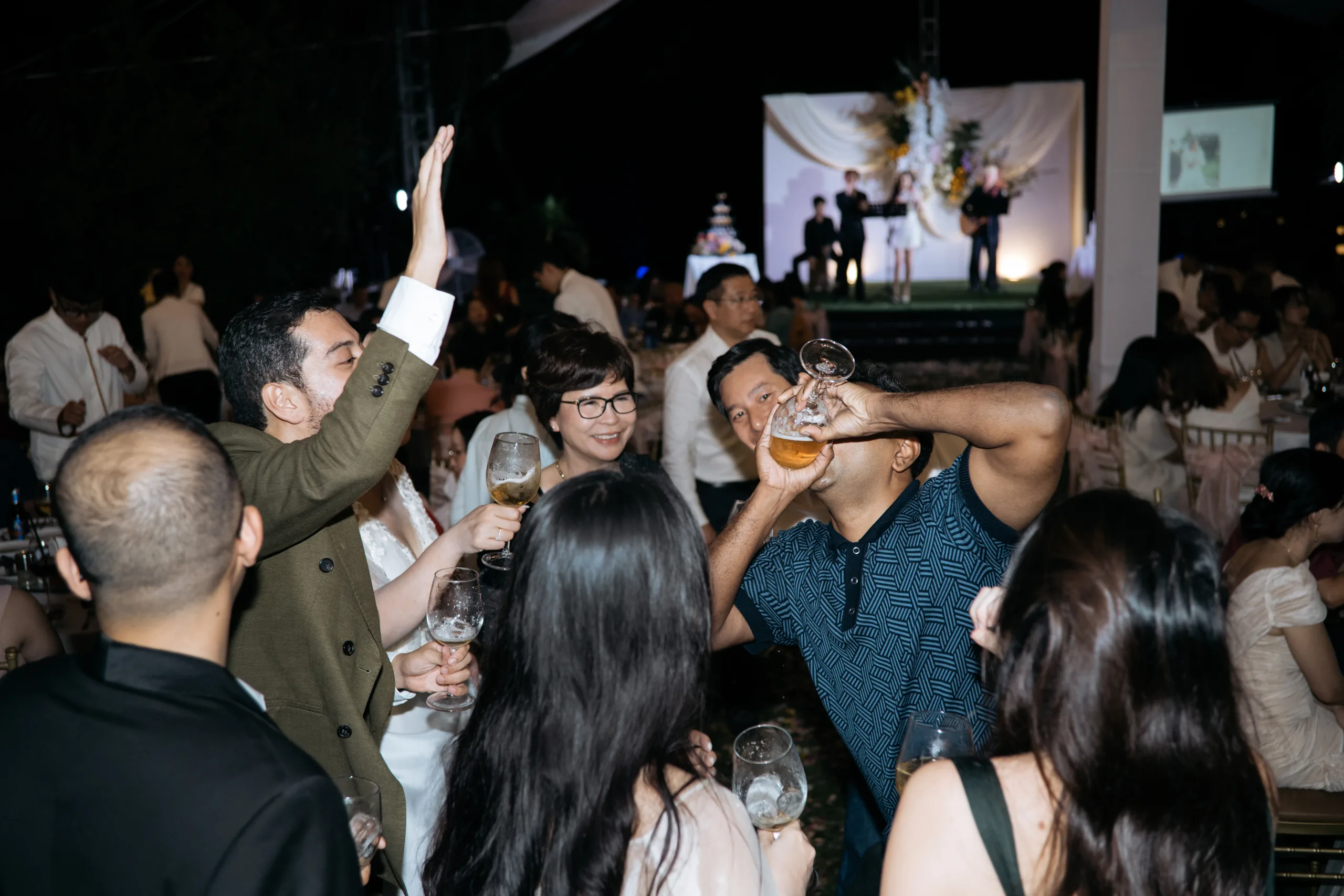 Từ bàn tiệc dưới mái lều trắng, những bước chân nhẹ nhàng trên thảm cỏ, đến khoảnh khắc mọi người cùng nâng ly chúc phúc, mỗi bức ảnh đều lưu giữ một mảnh ký ức chân thật.