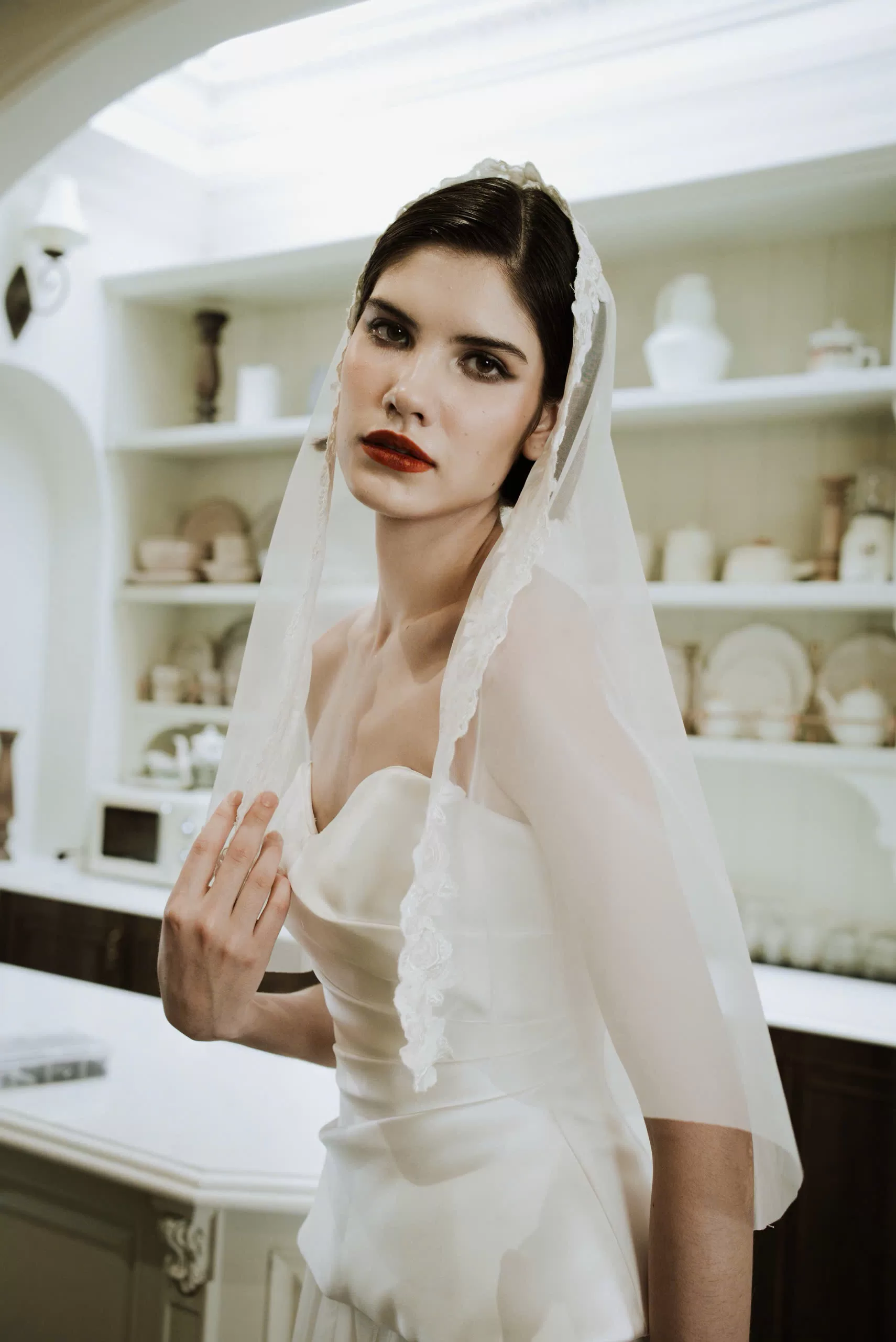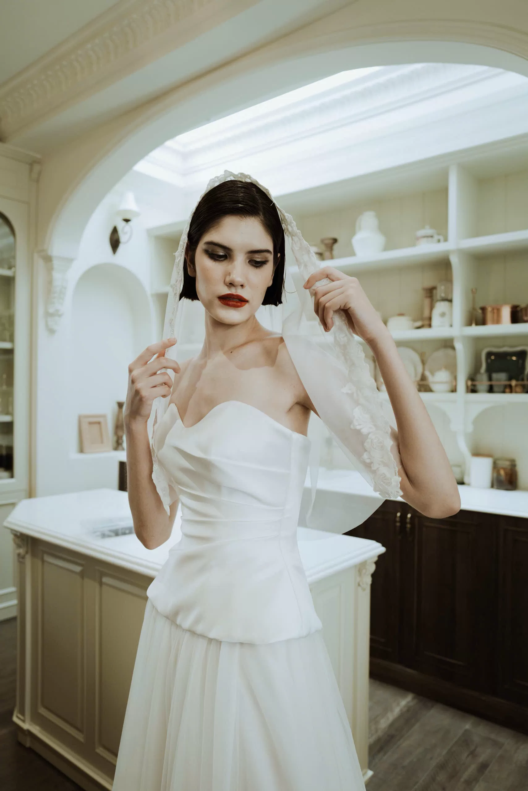 lưới bay bổng, mang đến cho nàng dâu vẻ đẹp vừa sang trọng vừa lãng mạn. Thiết kế
