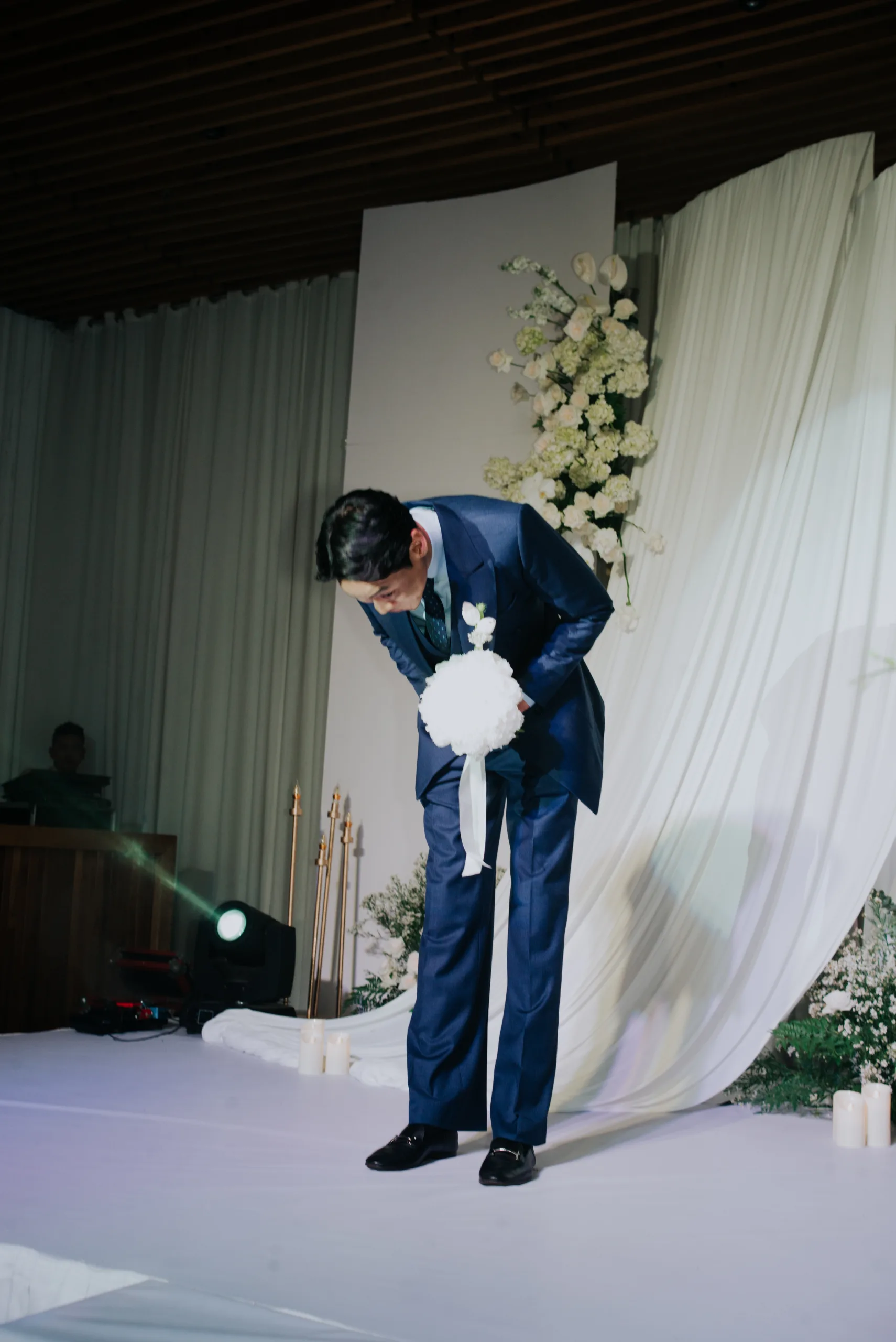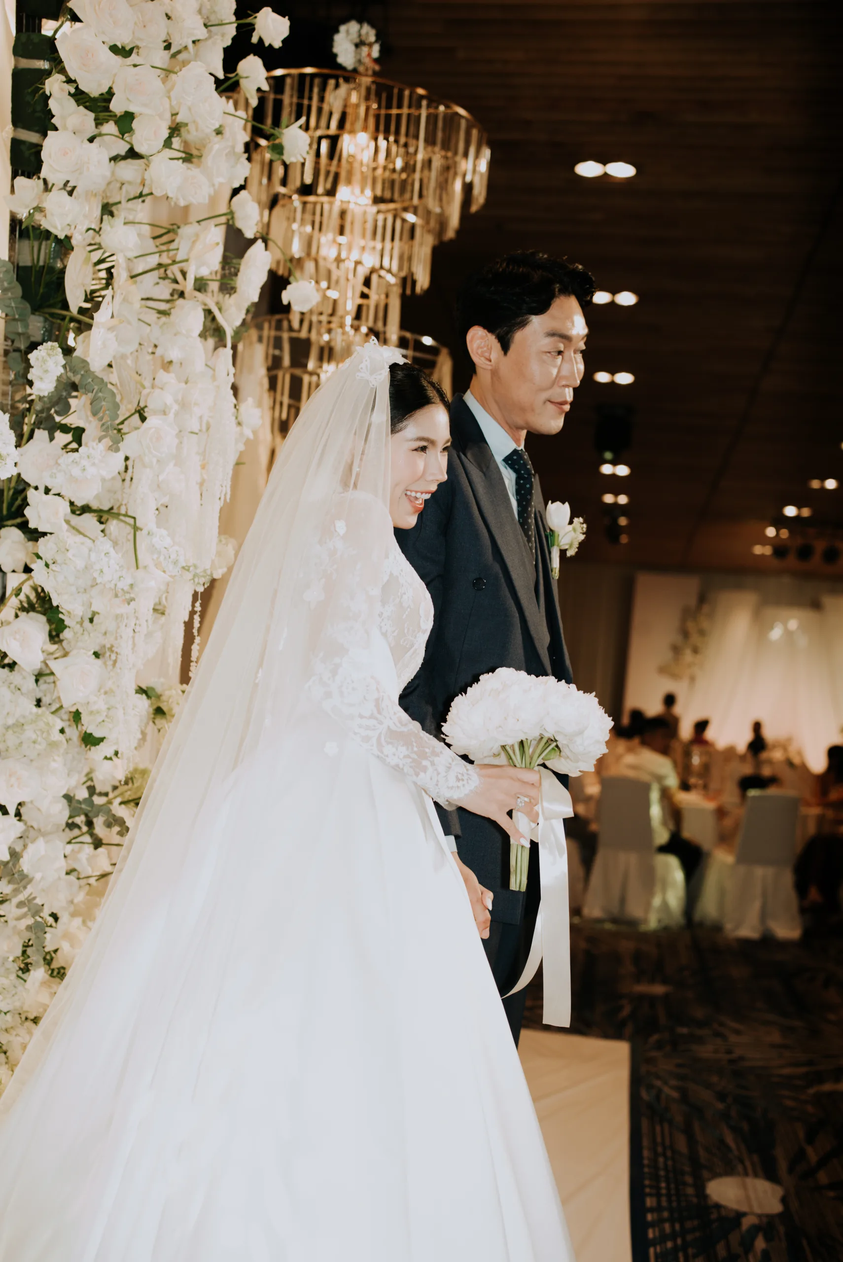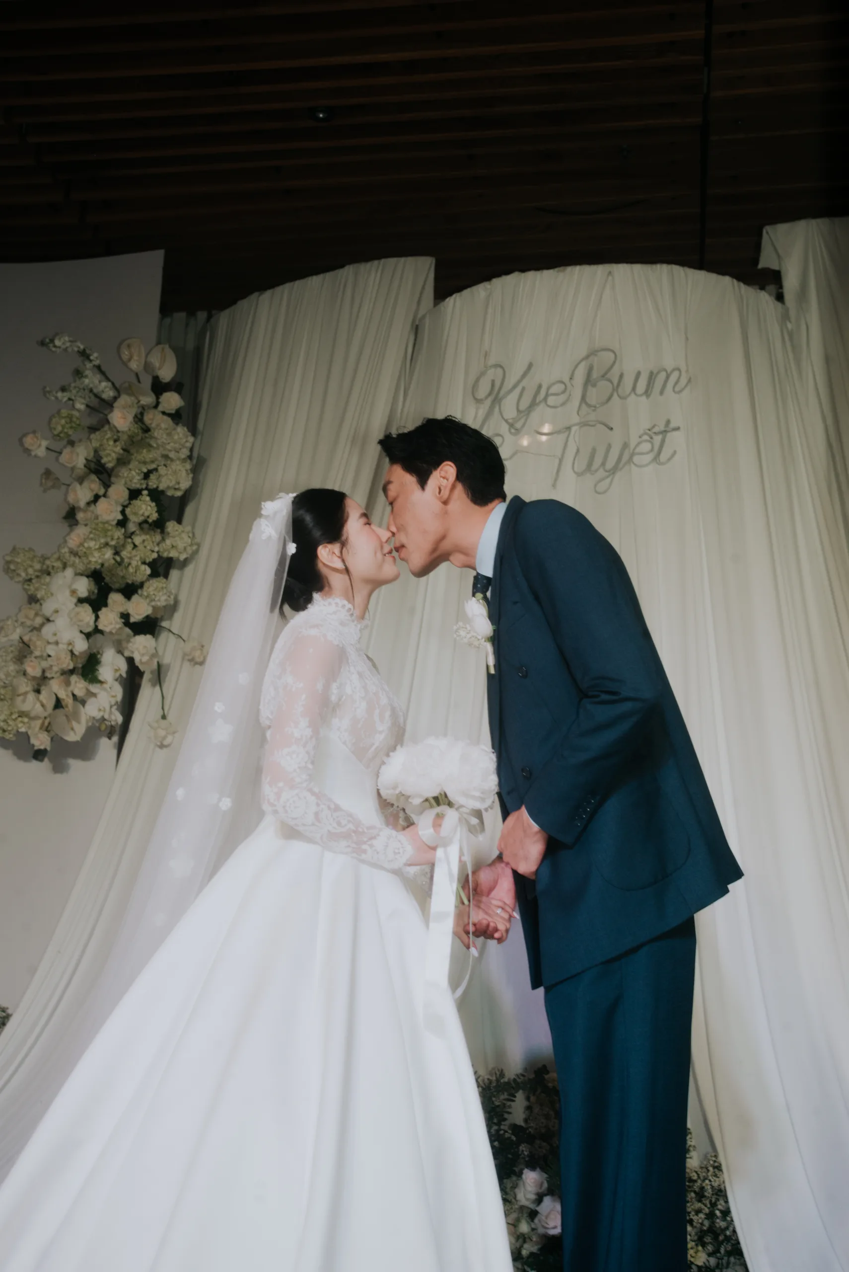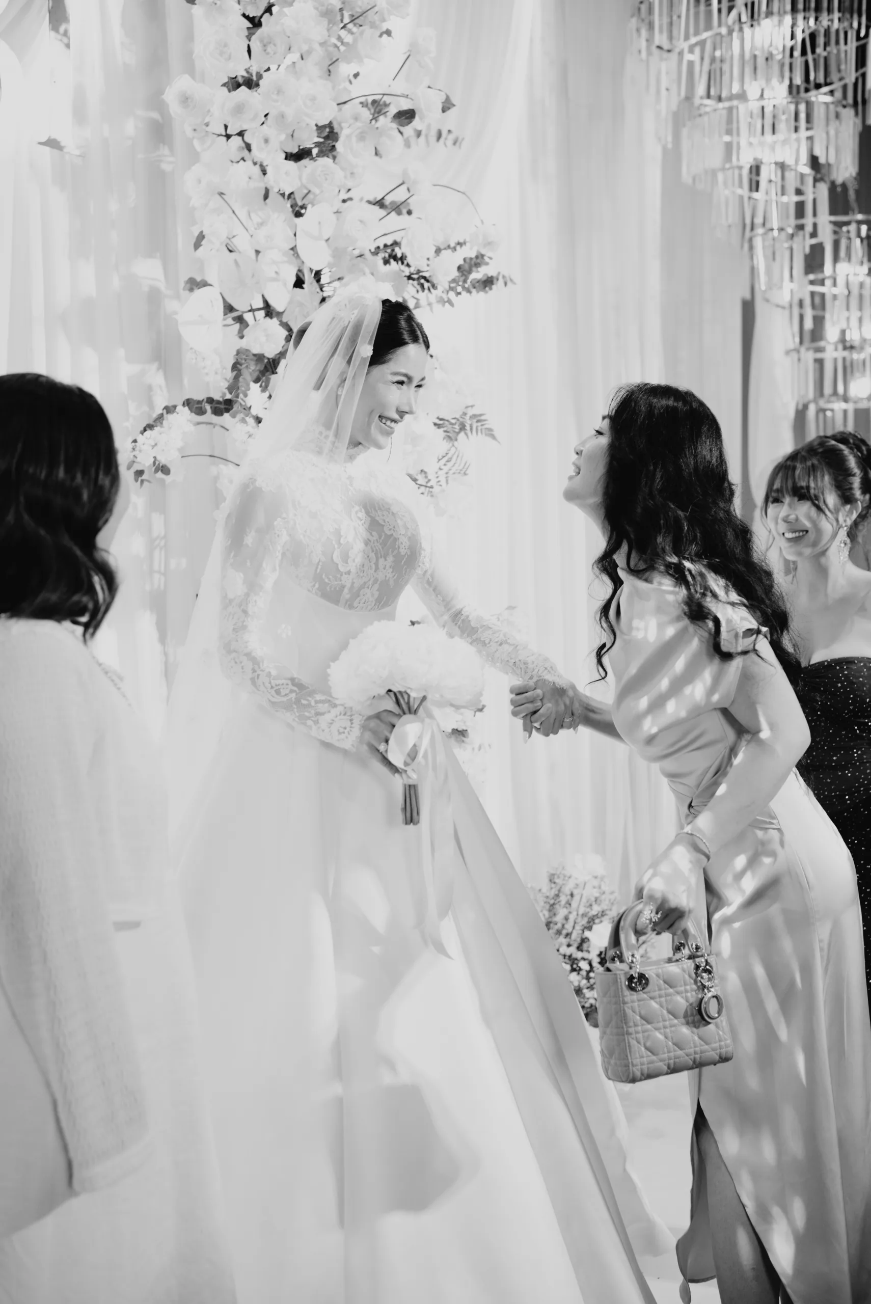 dưới lễ đường phủ đầy hoa trắng. Từng thước ảnh, dù là màu sắc ấm áp hay đen trắng hoài niệm,