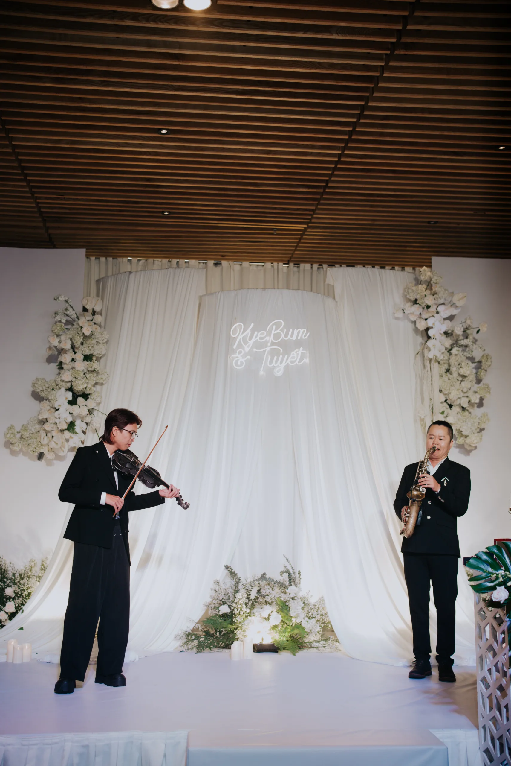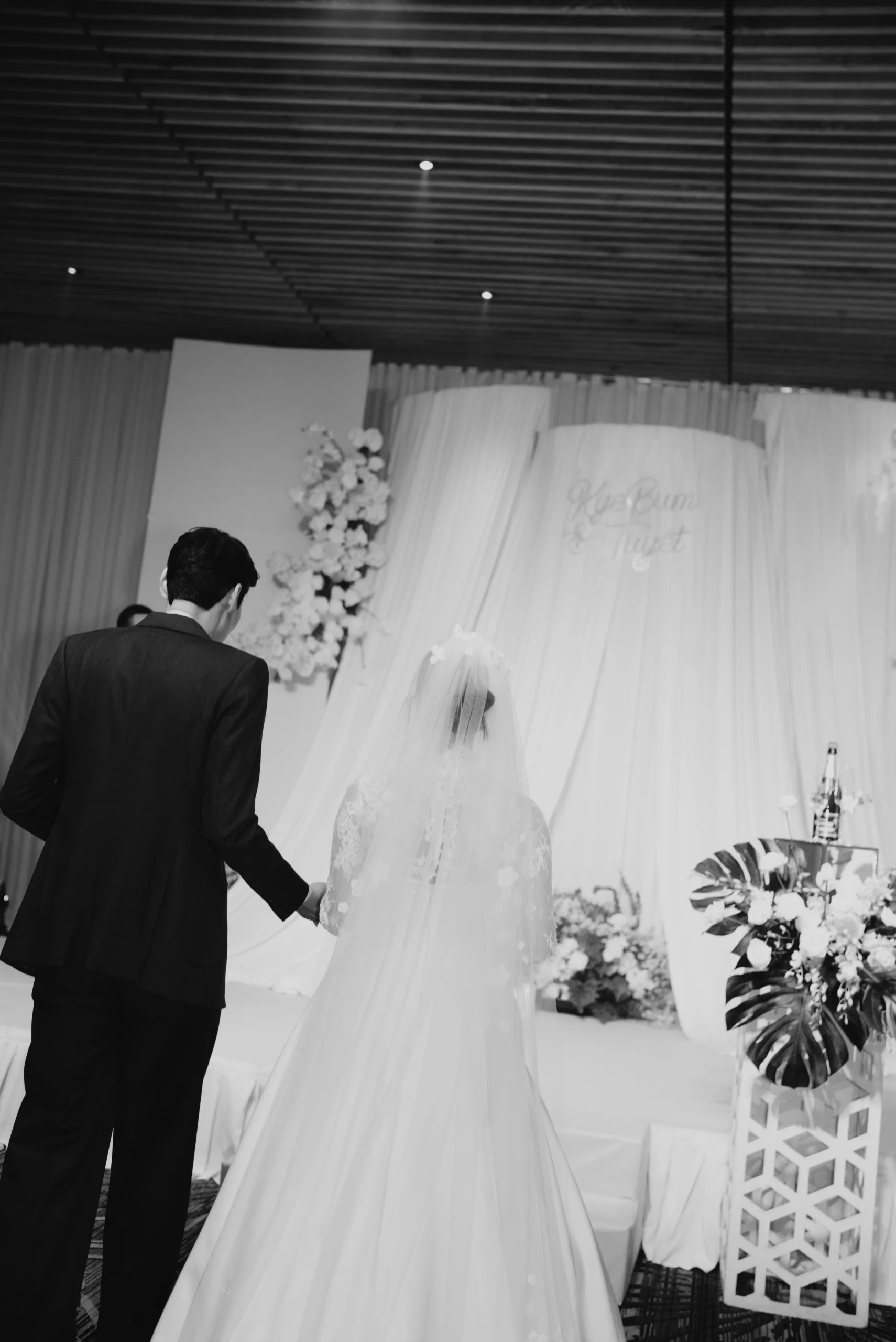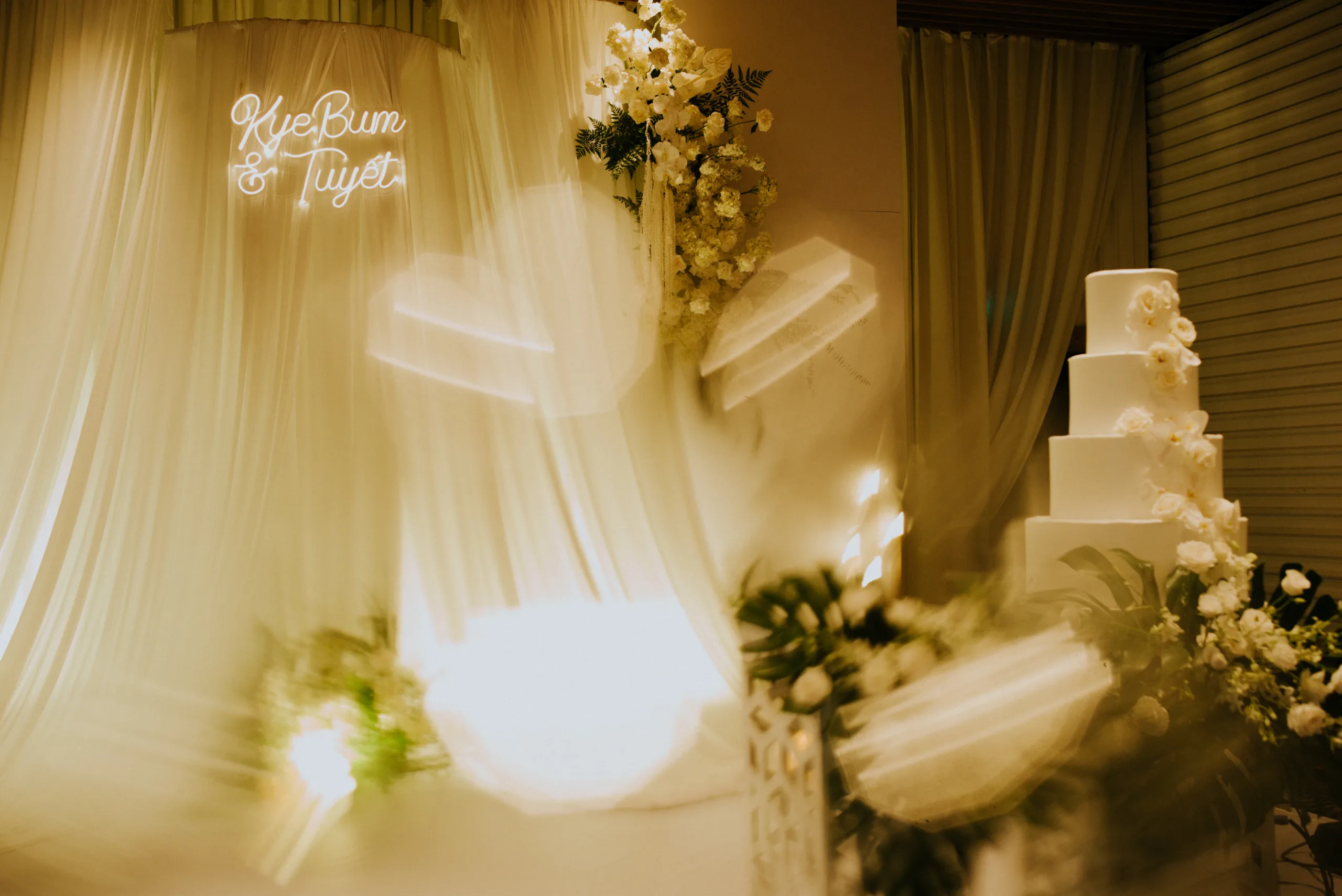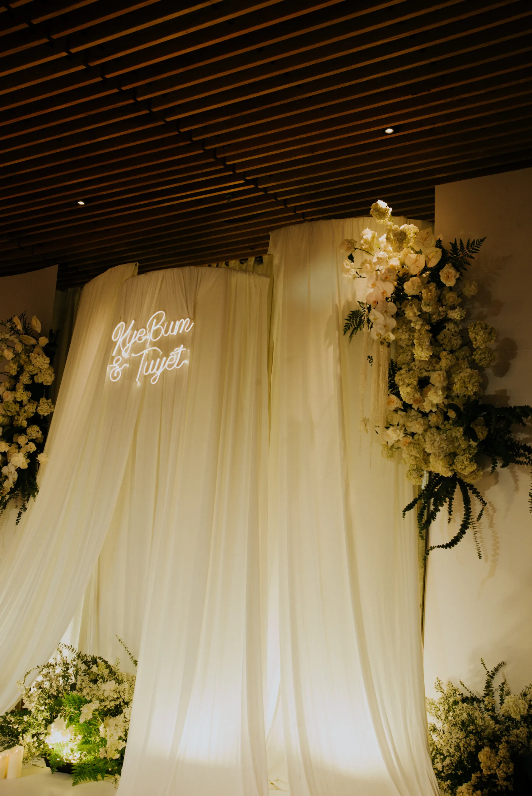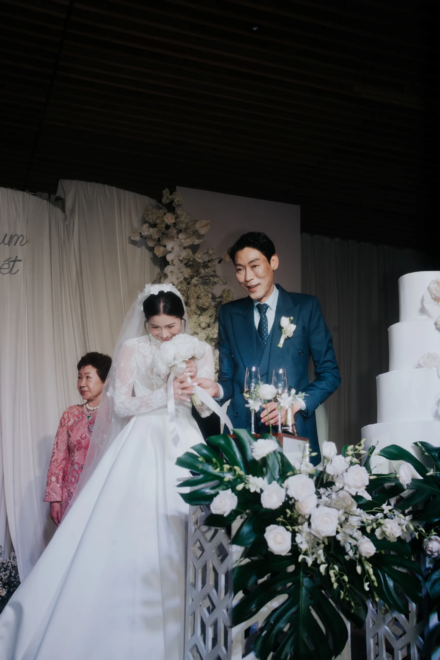 dưới lễ đường phủ đầy hoa trắng. Từng thước ảnh, dù là màu sắc ấm áp hay đen trắng hoài niệm,