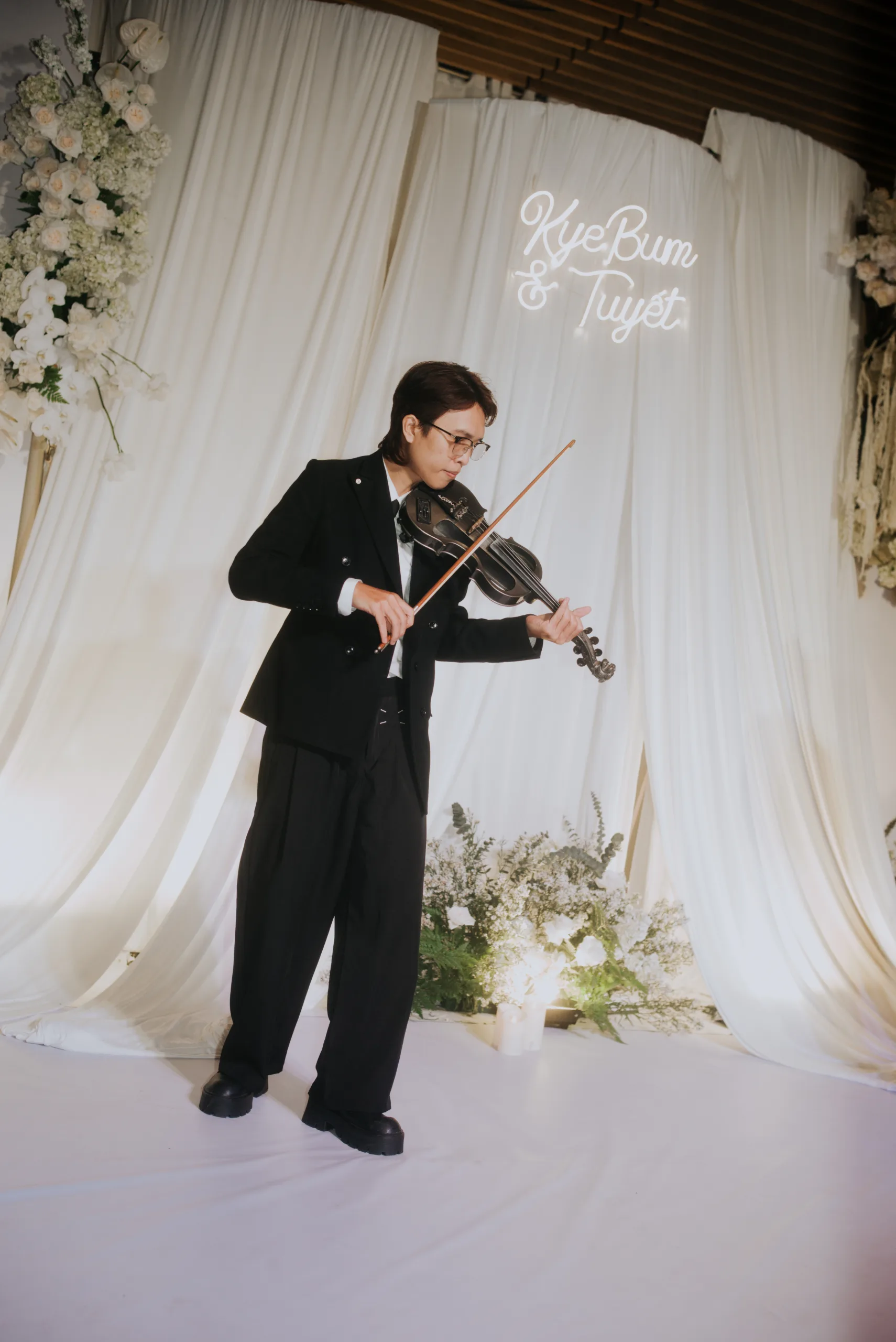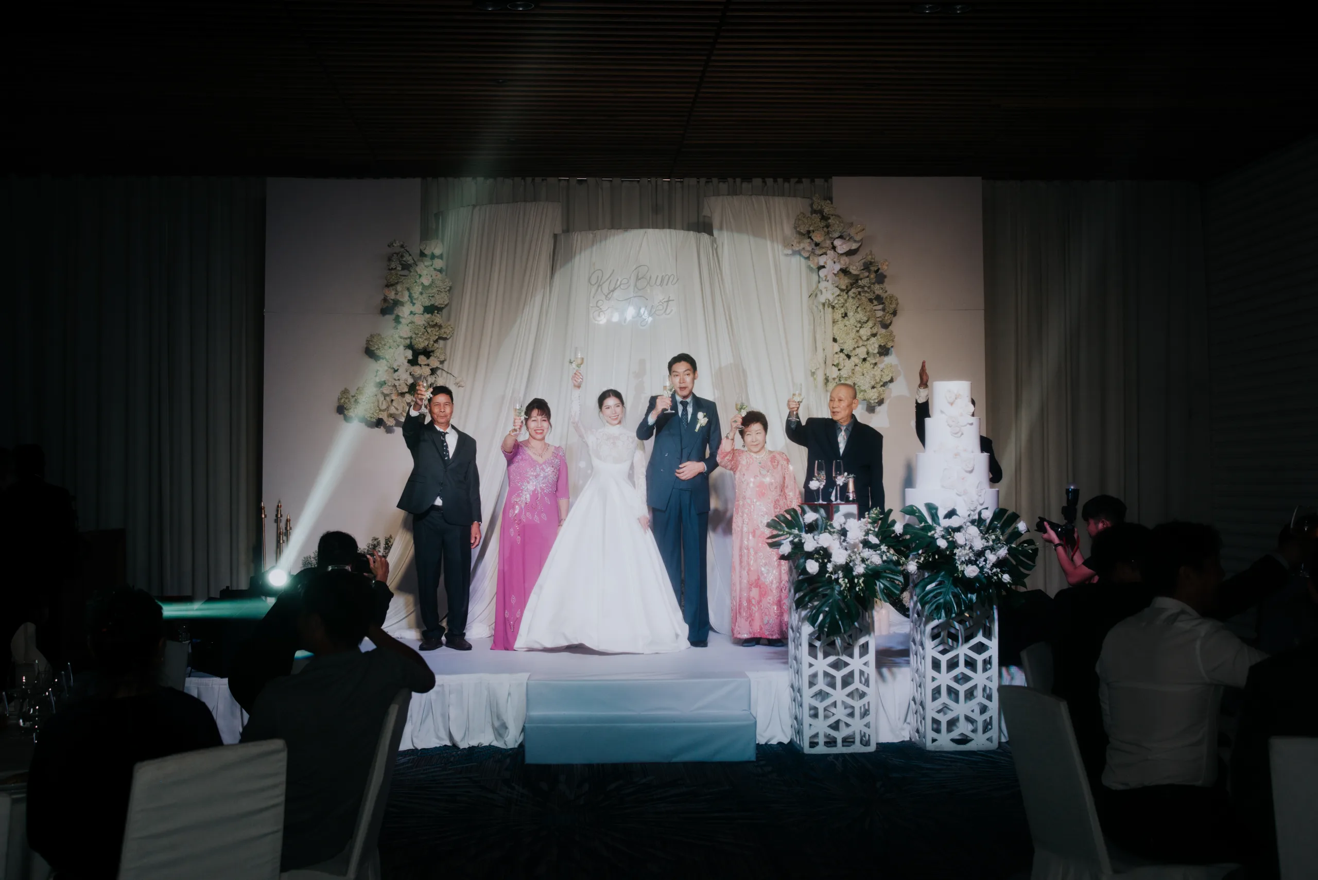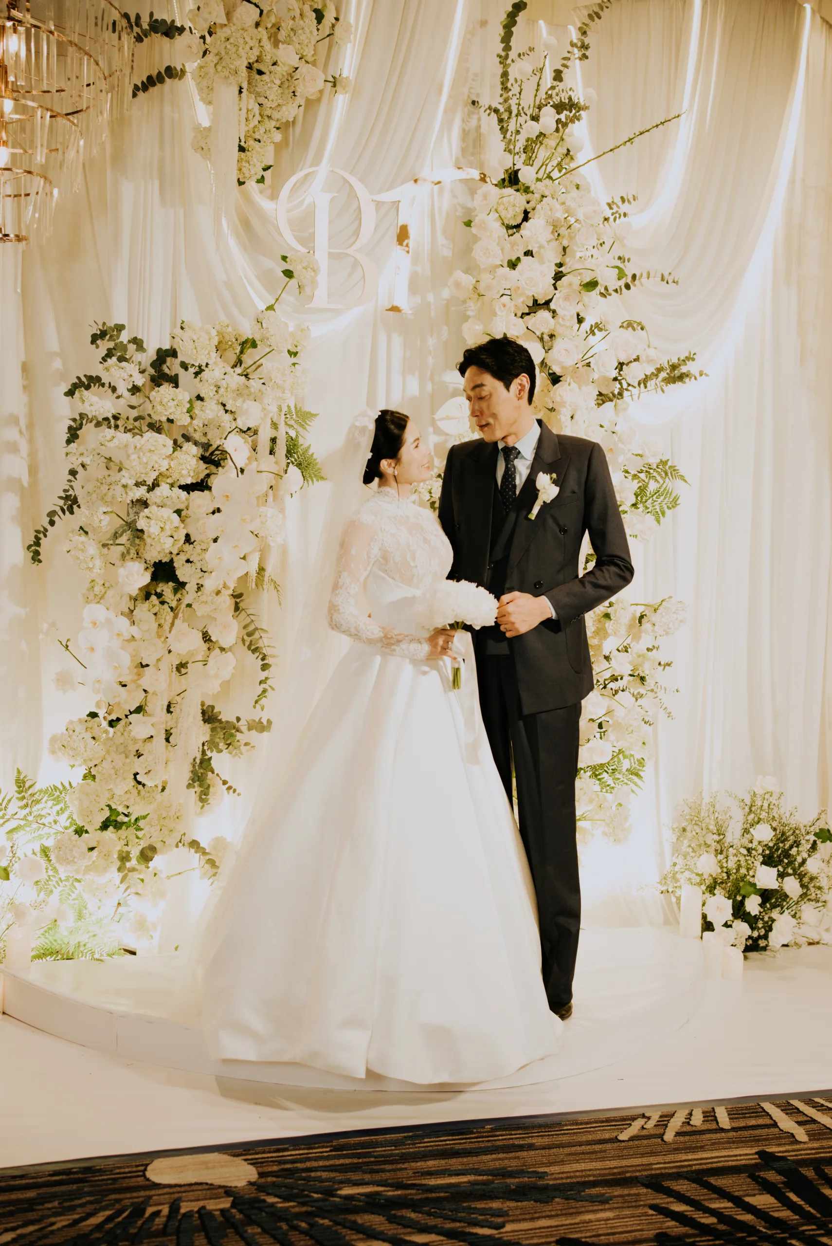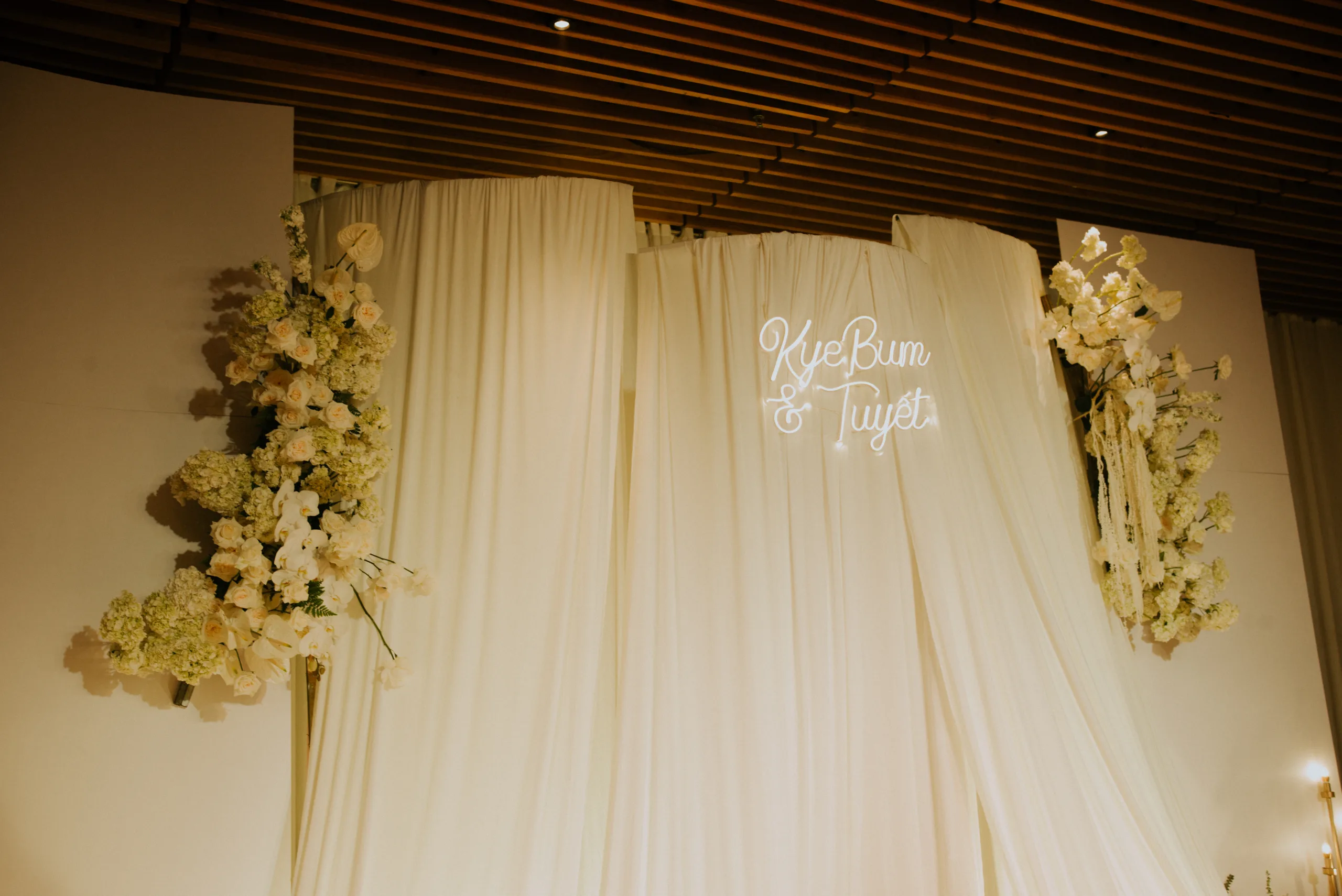 dưới lễ đường phủ đầy hoa trắng. Từng thước ảnh, dù là màu sắc ấm áp hay đen trắng hoài niệm,