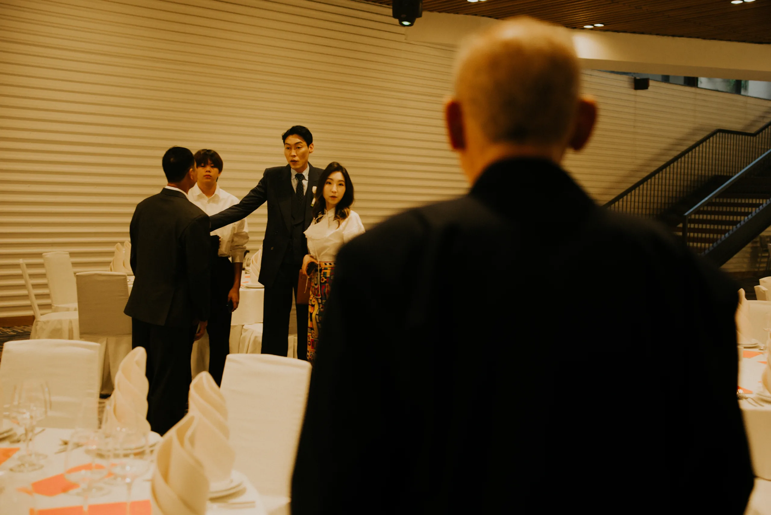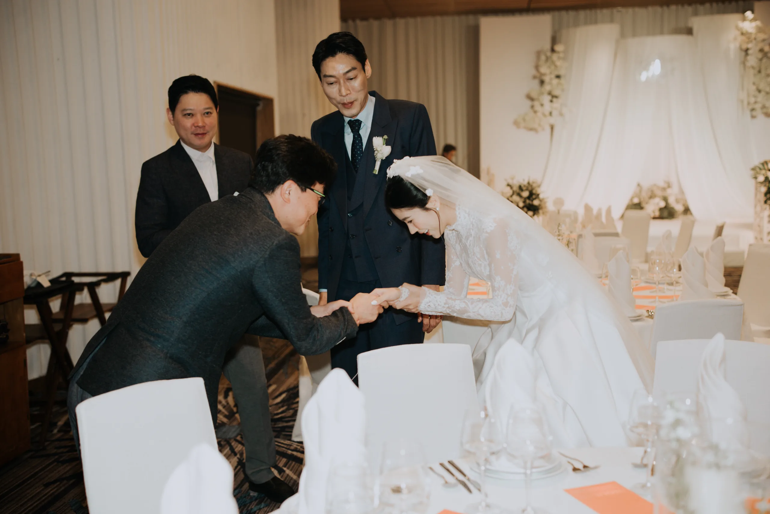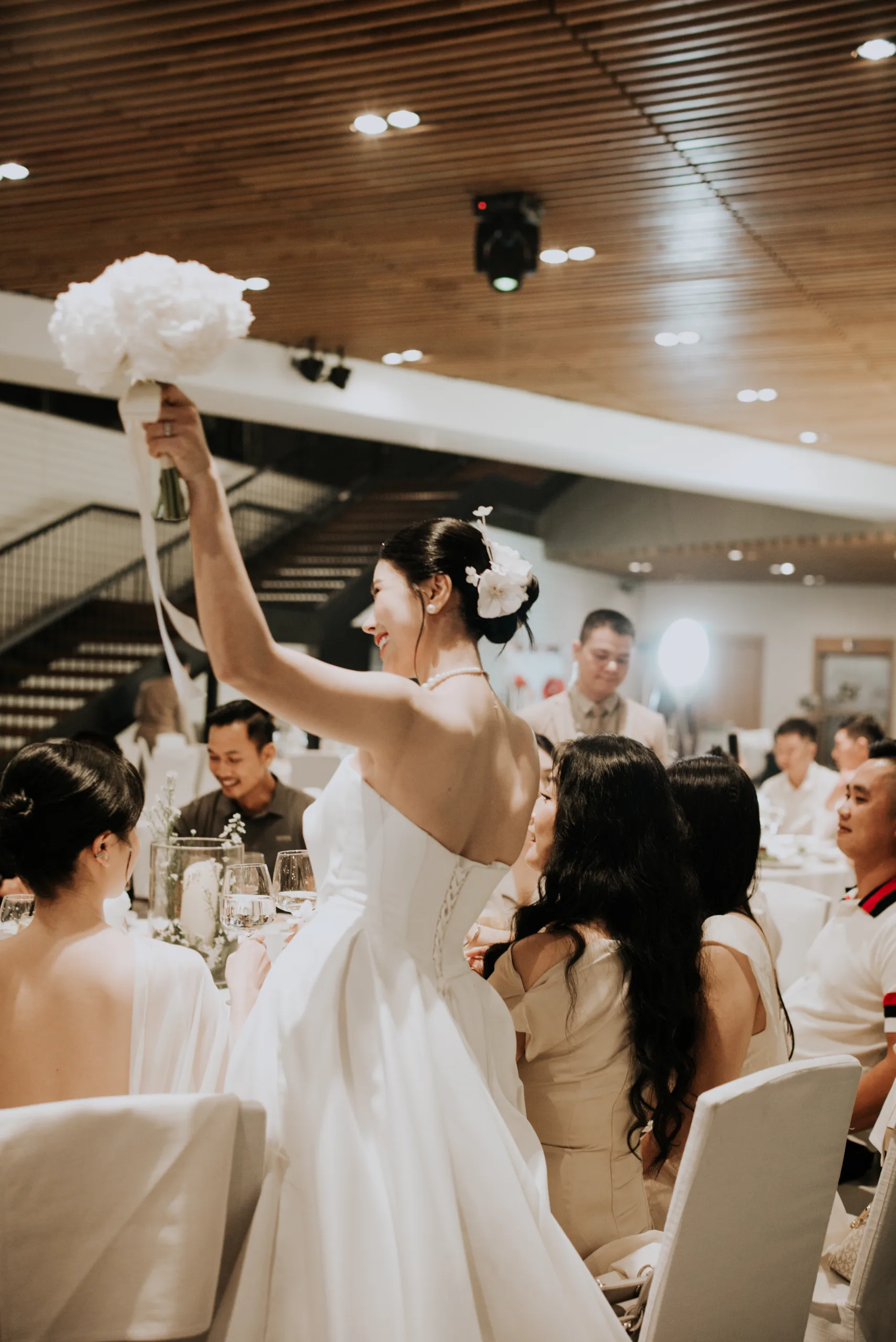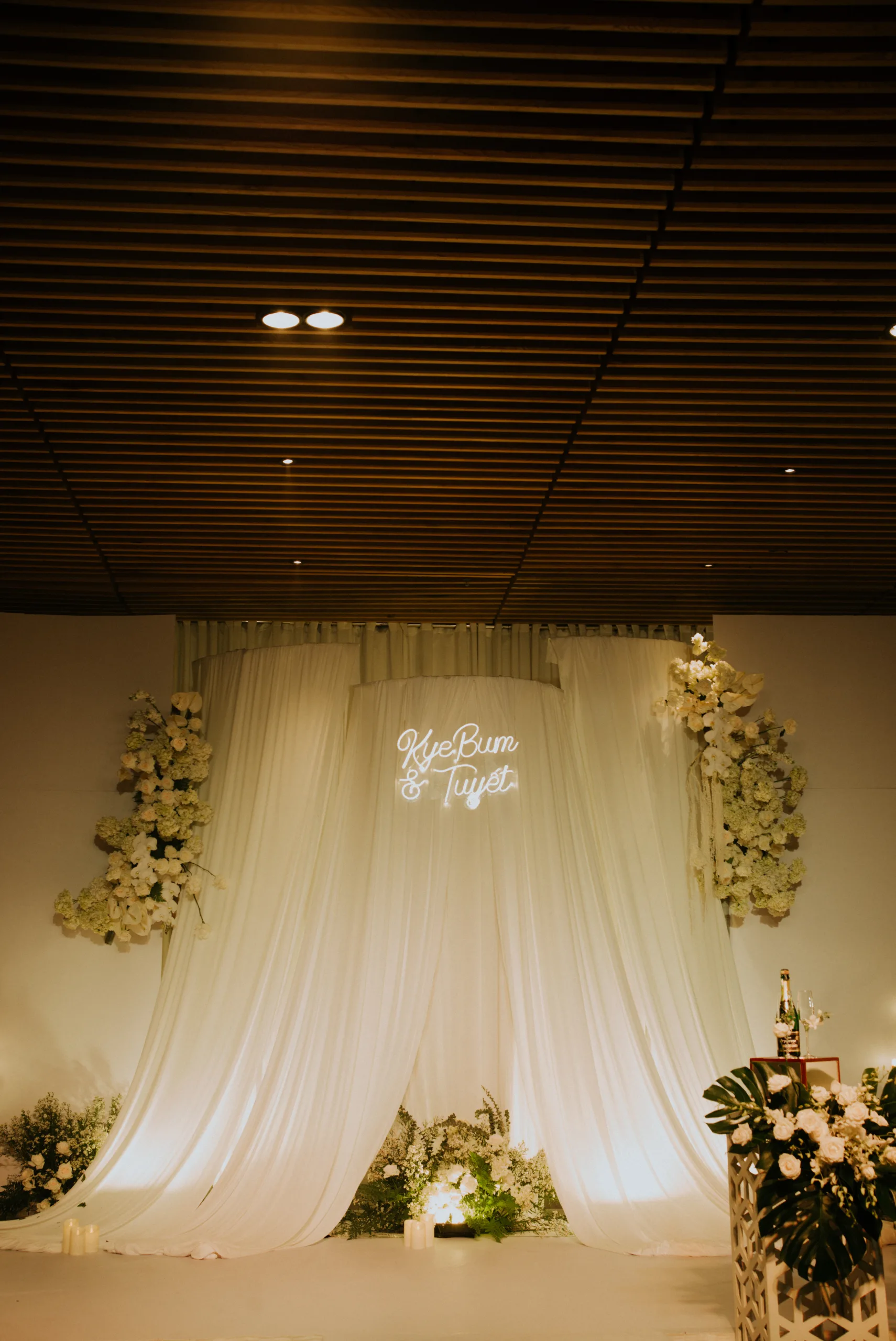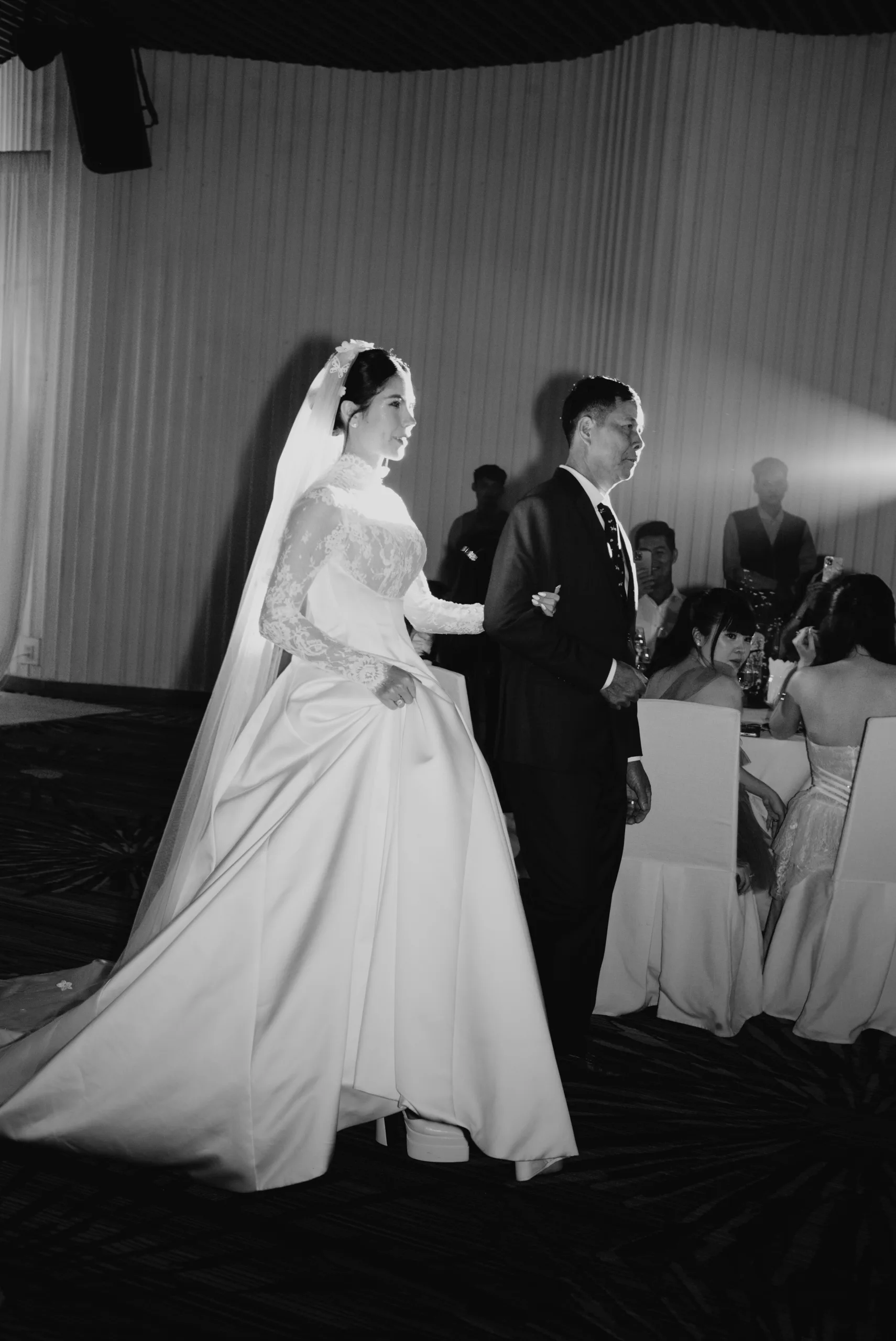 dưới lễ đường phủ đầy hoa trắng. Từng thước ảnh, dù là màu sắc ấm áp hay đen trắng hoài niệm,
