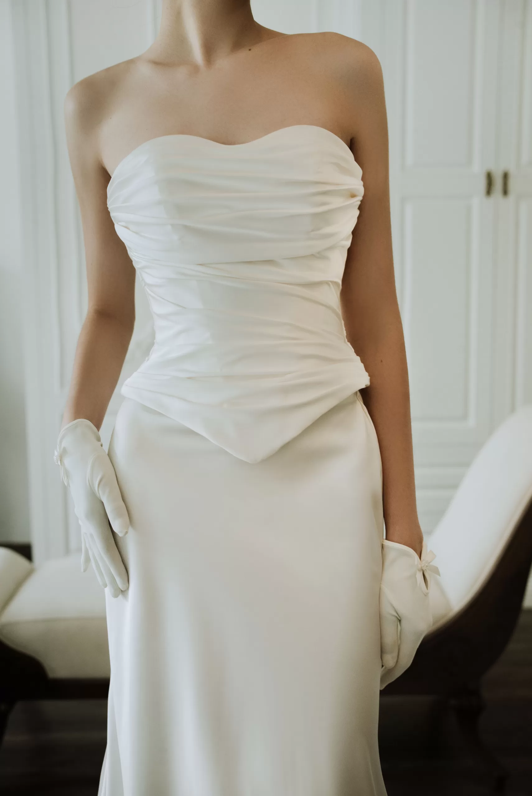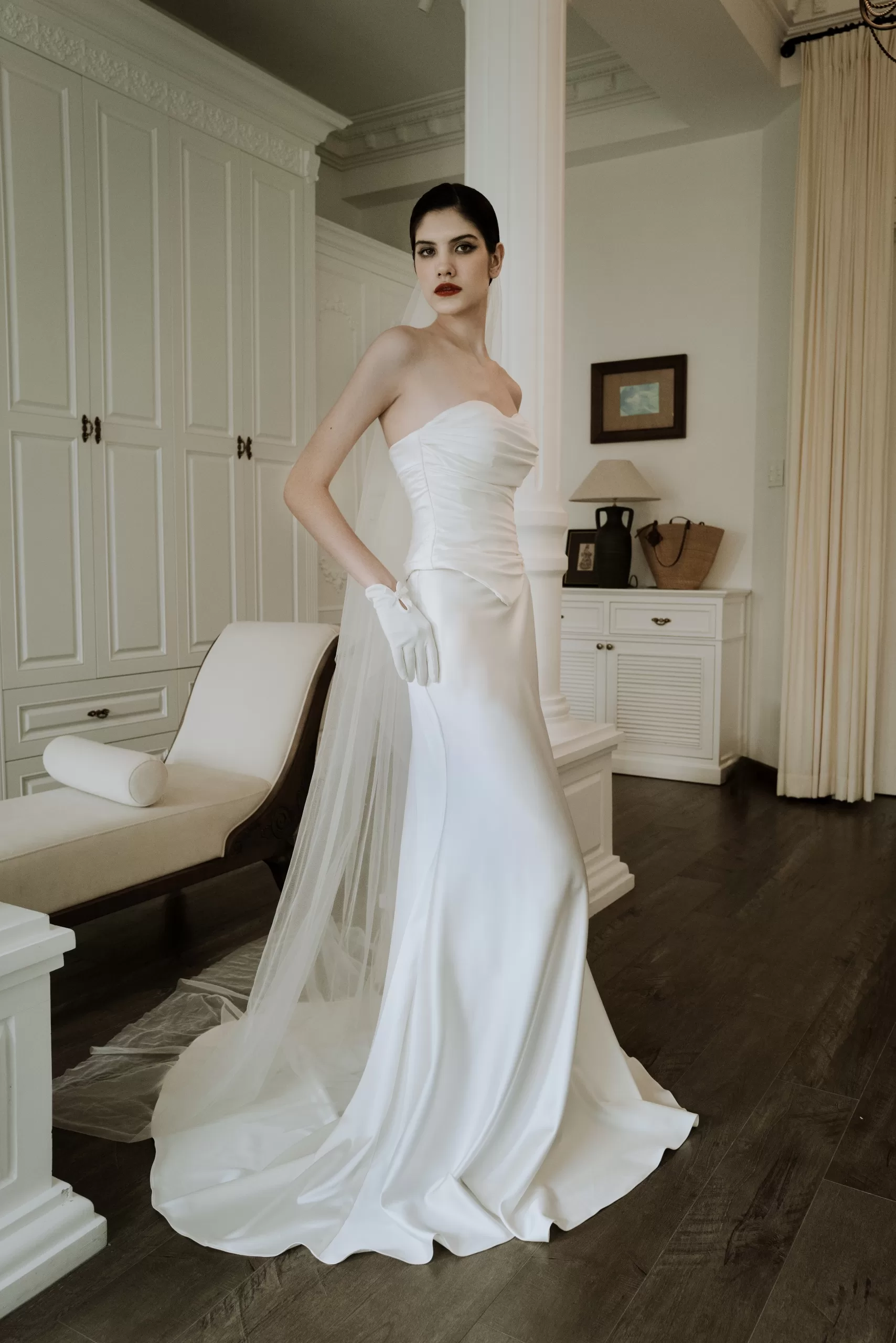 Thiết kế váy cưới là sự kết hợp hoàn hảo giữa kiểu dáng và chất liệu. Dáng corset tinh tế