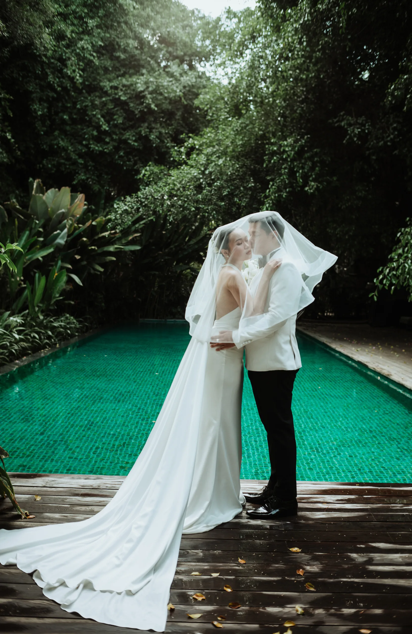 Cô dâu và chú rể đầy thanh lịch giữa kiến trúc gỗ và những tán cây xanh mướt. Từng góc máy ghi lại sự kết nối nhẹ nhàng nhưng bền chặt, tôn vinh một tình yêu tự do, phóng khoáng và tràn đầy sức sống.